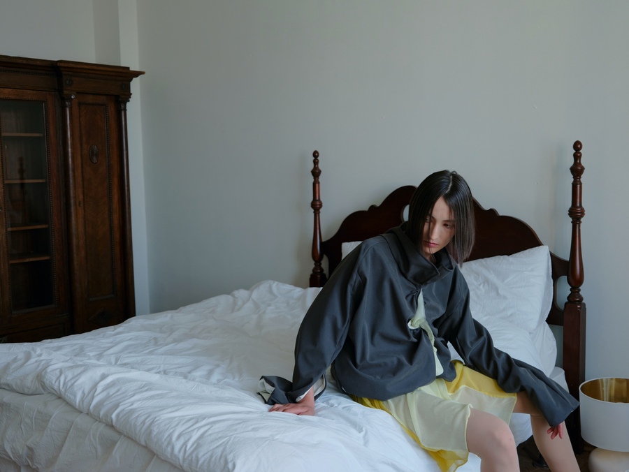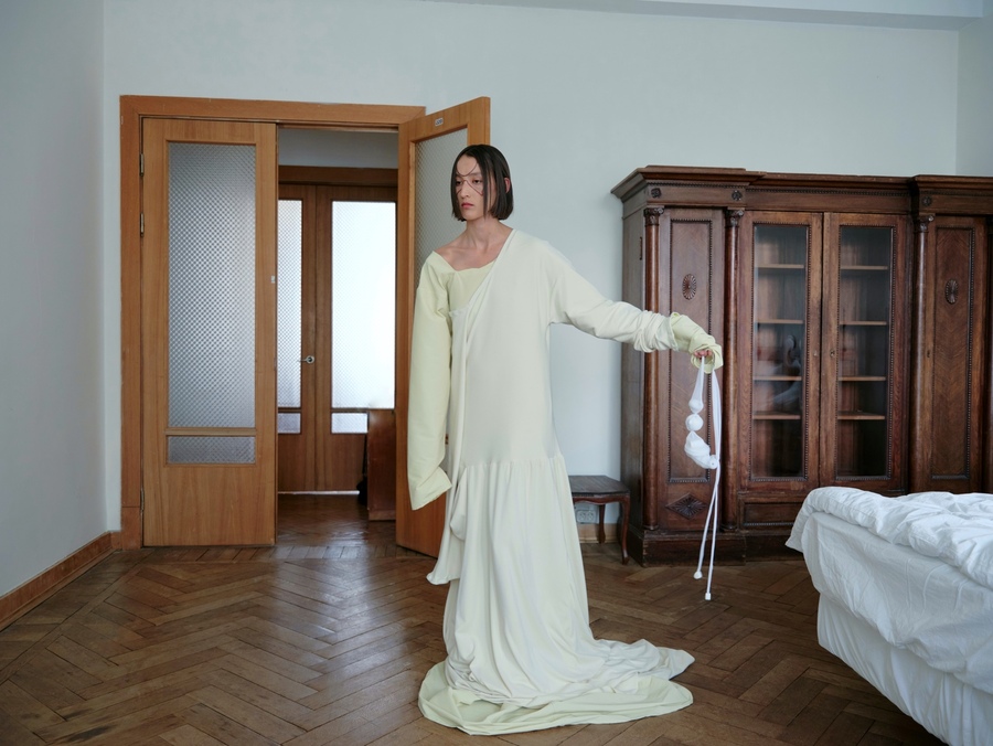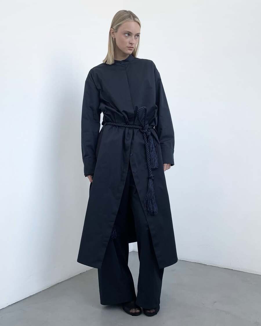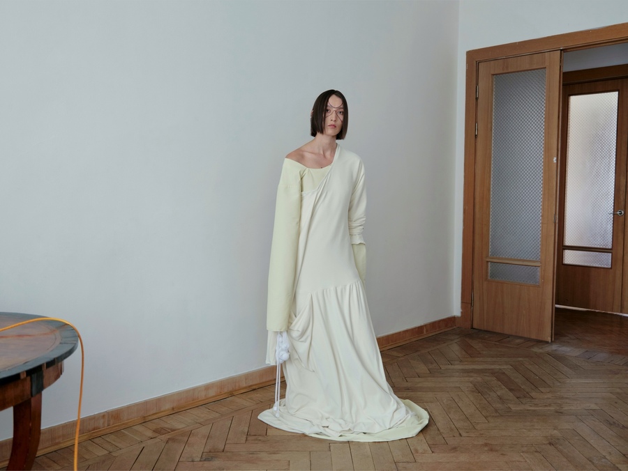 21 collection, 2024 Линейка, построенная на идее самоосознания и личной связи с домом. Вещи выполнены в темной, сдержанной палитре, силуэты прямые и закрытые. Основные элементы — длинное платье-рубашка, широкие брюки и канатный пояс с кистями.