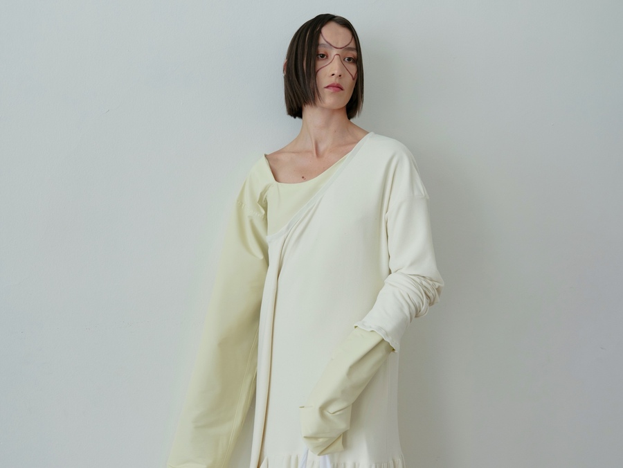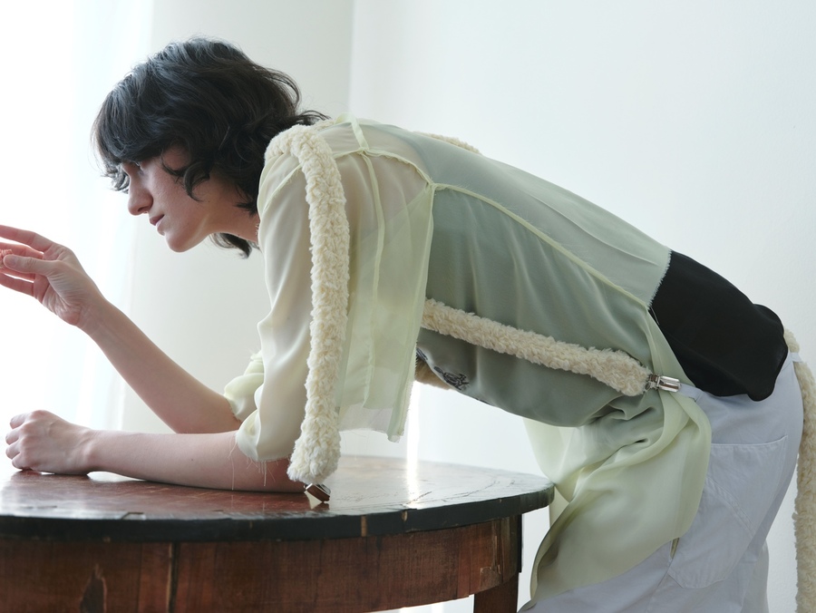 Transformation, 2025 Выпускная коллекция, посвященная теме расставания и внутреннего взросления, построена вокруг эмоционального жеста — попытки удержать, пересобрать, прожить утрату и обрести новое «я». Изделия визуализируют этот переход через мягкие разрывы, асимметрию и незаконченные формы.