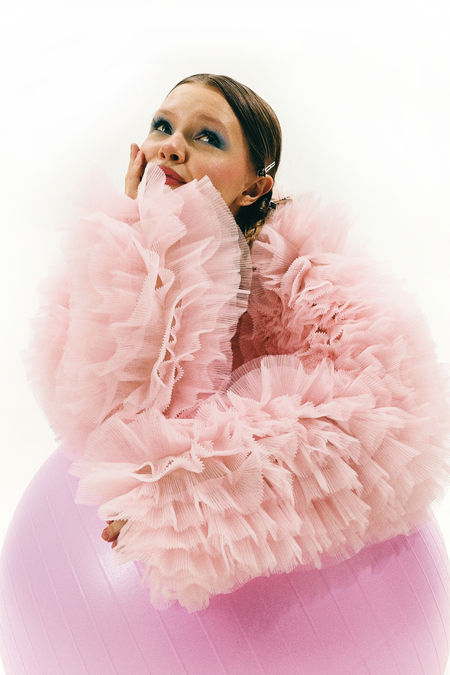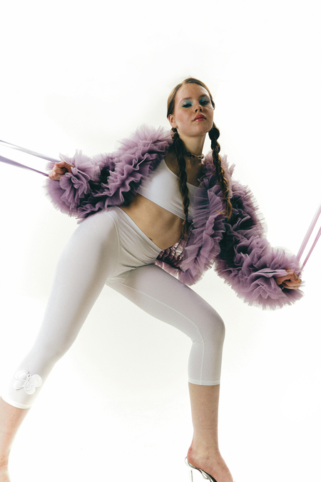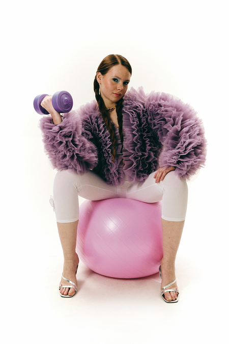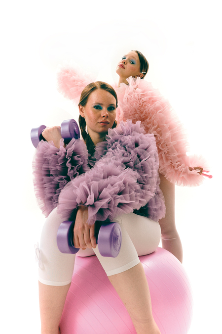 Съёмка для бренда одежды «Rejo», концепция которой заключается в игре с представлениями о нормах. Ничего не мешает выглядеть гламурно даже на тренировке.