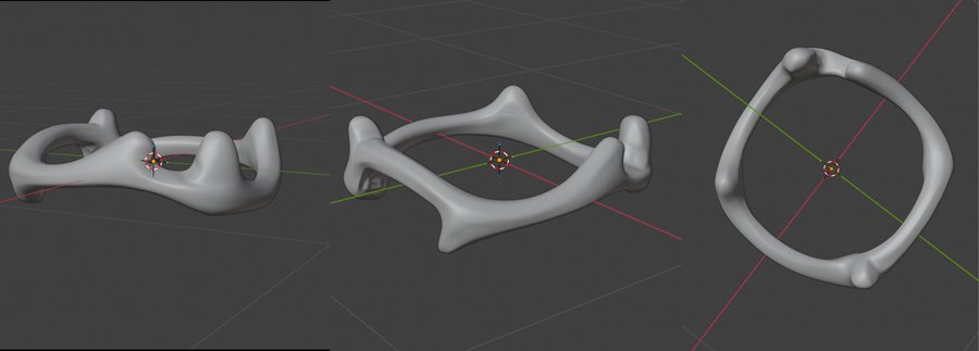 На этом этапе происходила генерация базовой 3D-геометрии колец на основе ранее созданных визуальных концептов. Генерация выполнялась без ручного моделирования, с использованием нейросети для создания объемных форм.