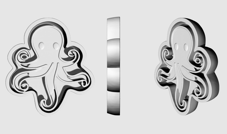 Набор форм для выпечки в виде морской фауны, разработанный при помощи инструментов ИИ для печати на 3D принтере.