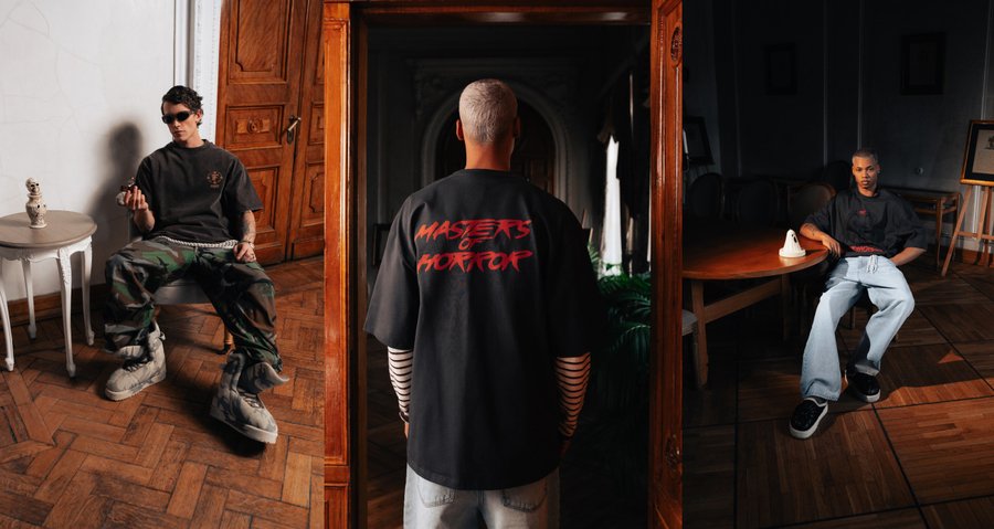 Masters of Horror, 2025 Специальная линейка в рамках коллекции ss2025, инспирированная эстетикой классических фильмов ужасов, винтажной культурой и духом старой школы Мемфис-рэпа. Линейка включает в себя свитшот, футболки, худи на молнии, бомбер с кожаными рукавами.