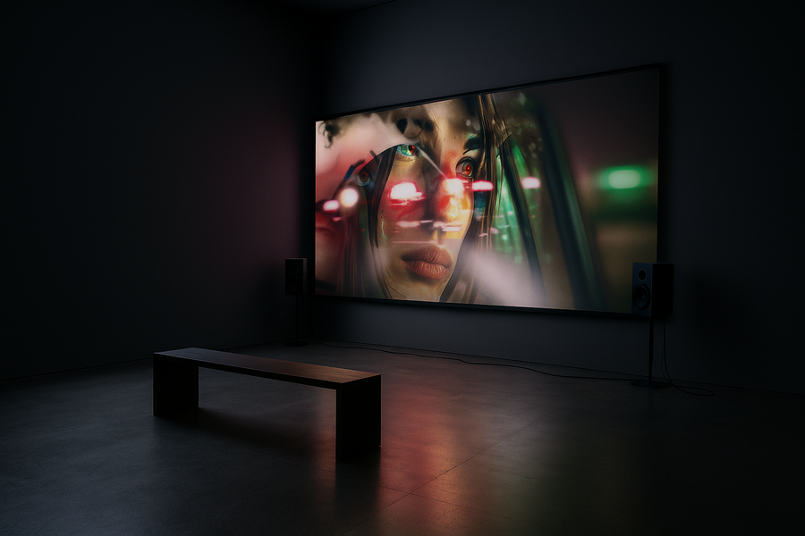 Это история-интроспекция, в которой я обращаюсь к самой себе. На экране появляется мой образ, созданный в нейросети—альтер-эго, через которое раскрываются мои подлинные воспоминания и переживания. Сначала они выглядят блеклыми, затем усиливаются и гиперболизируются, превращаясь в сумбурные образы и ситуации, которые никогда не происходили, но ощущаются как настоящие. Финал подчеркивает невозможность вернуть прошлое— слёзы становятся символом его необратимости.