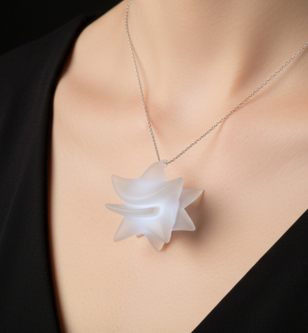 Полупрозрачная матовая фотополимерная смола с эффектом светорассеивания, создающая ощущение внутреннего свечения и визуальной глубины. Материал должен быть однородным по структуре, без желтизны, пузырей и видимых дефектов. Цвет — молочно-белый или нейтрально-прозрачный.