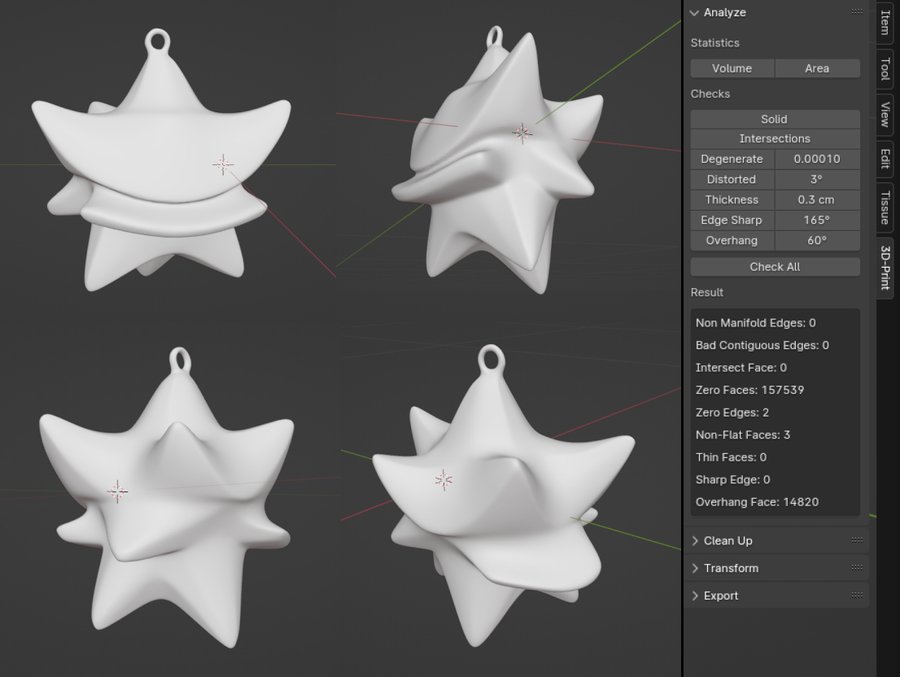 3D Print Toolbox (Blender Add-on): Проверка и контроль пригодности моделей к 3D-печати: проверяет толщину стенок, замкнутость геометрии, корректность нормалей и наличие ошибок сетки