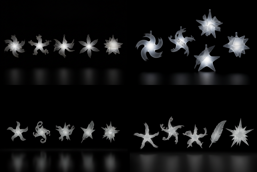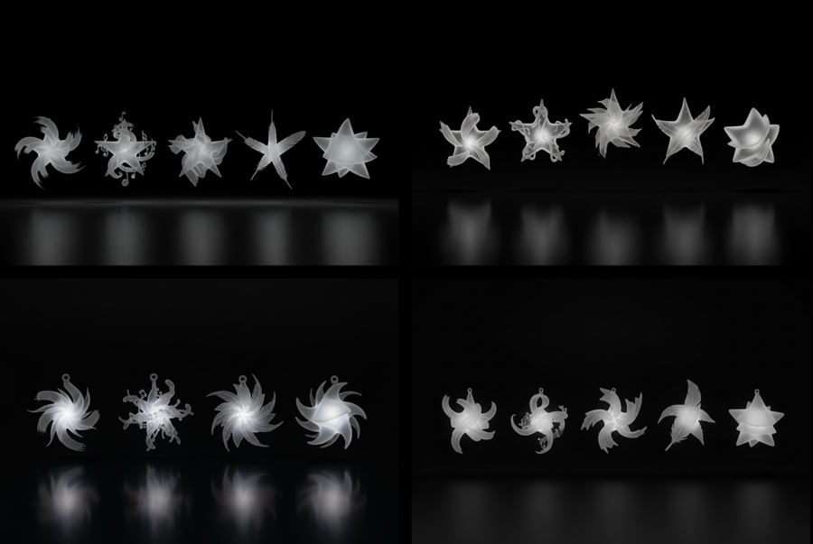 ChatGPT: Использовался как инструмент смысловой и формальной настройки проекта: для формулировки концепции серии, уточнения метафор каждого кулона, а также для точной калибровки промтов под нужные визуальные характеристики (прозрачность, слоистость, характер лучей, масштаб, фактура). Это позволило выстроить единый визуальный язык всей серии и избежать случайности в генерациях.
