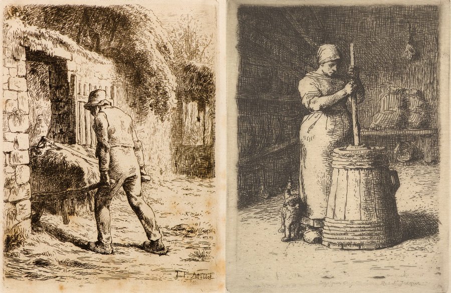 Жан-Франсуа Милле, «Сбор картофеля», 1853 Жан-Франсуа Милле, «Крестьянин с навозной телегой», 1852 Жан-Франсуа Милле, «Женщина, сбивающая масло», 1855