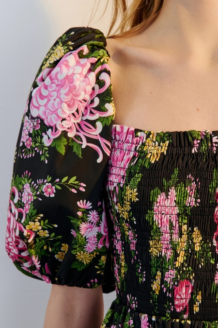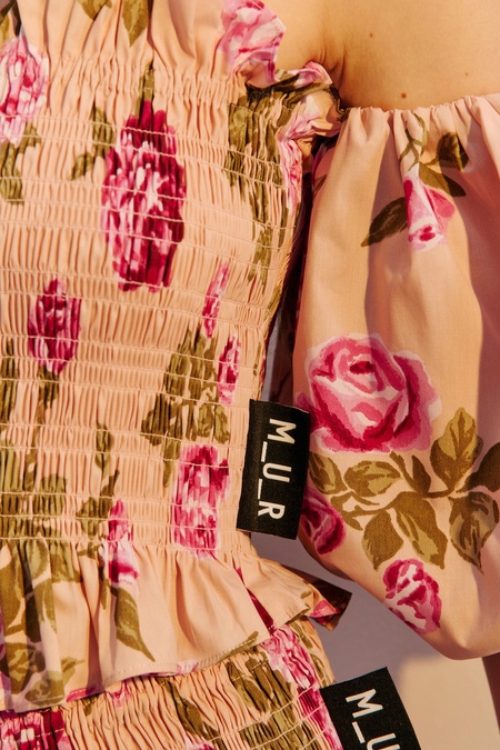 M_U_R известен тем, что создает одежду из винтажных тканей, найденных на блошиных рынках или подаренных друзьями; в коллаборации дизайнеры Befree оцифровали винтажные принты и перенесли их на вещи романтичного кроя — платья с рукавами‑баллонами, широкие брюки, блузки с рюшами, мини‑шорты и ленты для кепок.