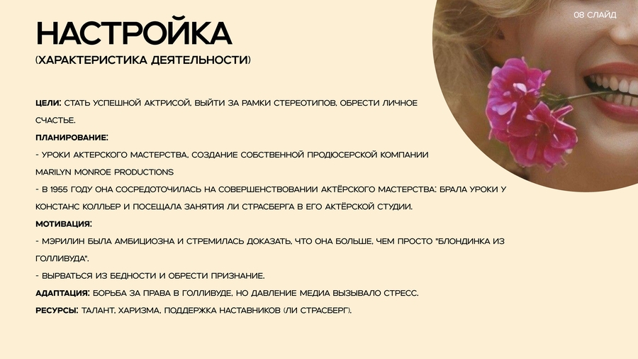 Моя конечная цель — овладеть специальностью, позволяющей создавать эффективные и эстетически совершенные цифровые коммуникационные решения. Имея мотивацию к усердной учебе, начальные навыки работы с программами и твердые знания в смежных дисциплинах (реклама, продюсирование), я уверена, что данный курс даст мне необходимый импульс для достижения намеченных высот. Готова ответственно подходить к обучению и активно участвовать в научной и творческой жизни факультета. Искренне надеюсь, что моя кандидатура окажется интересной и полезной для вашей образовательной программы.