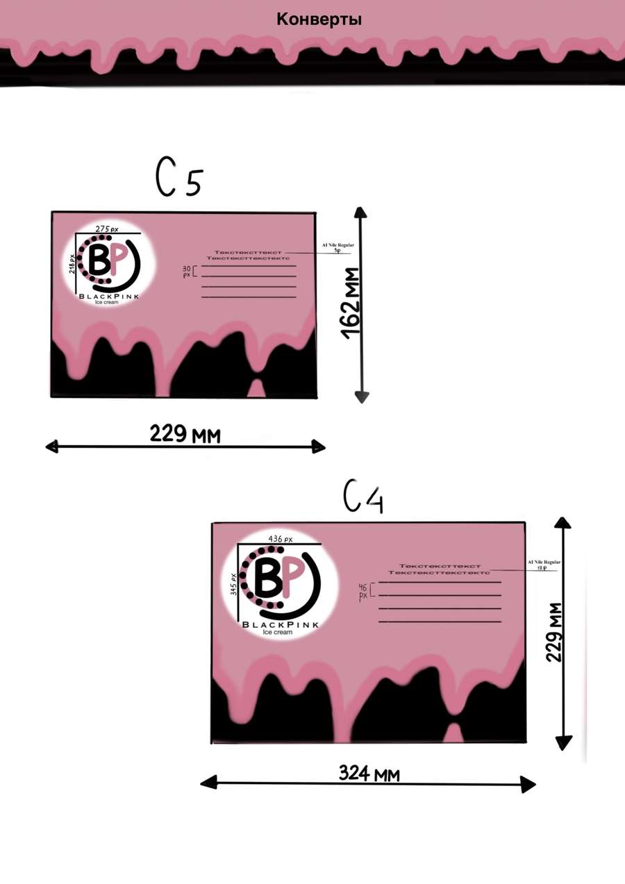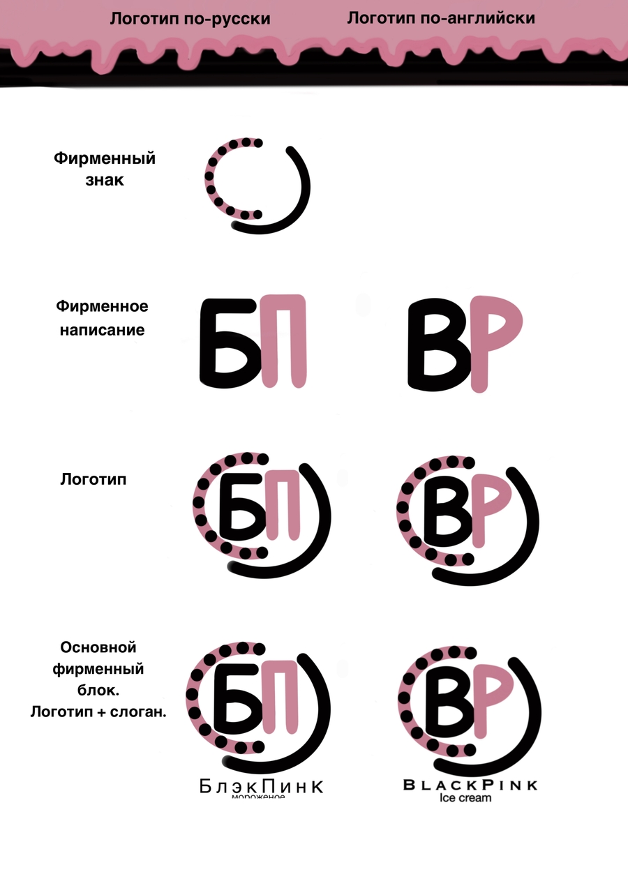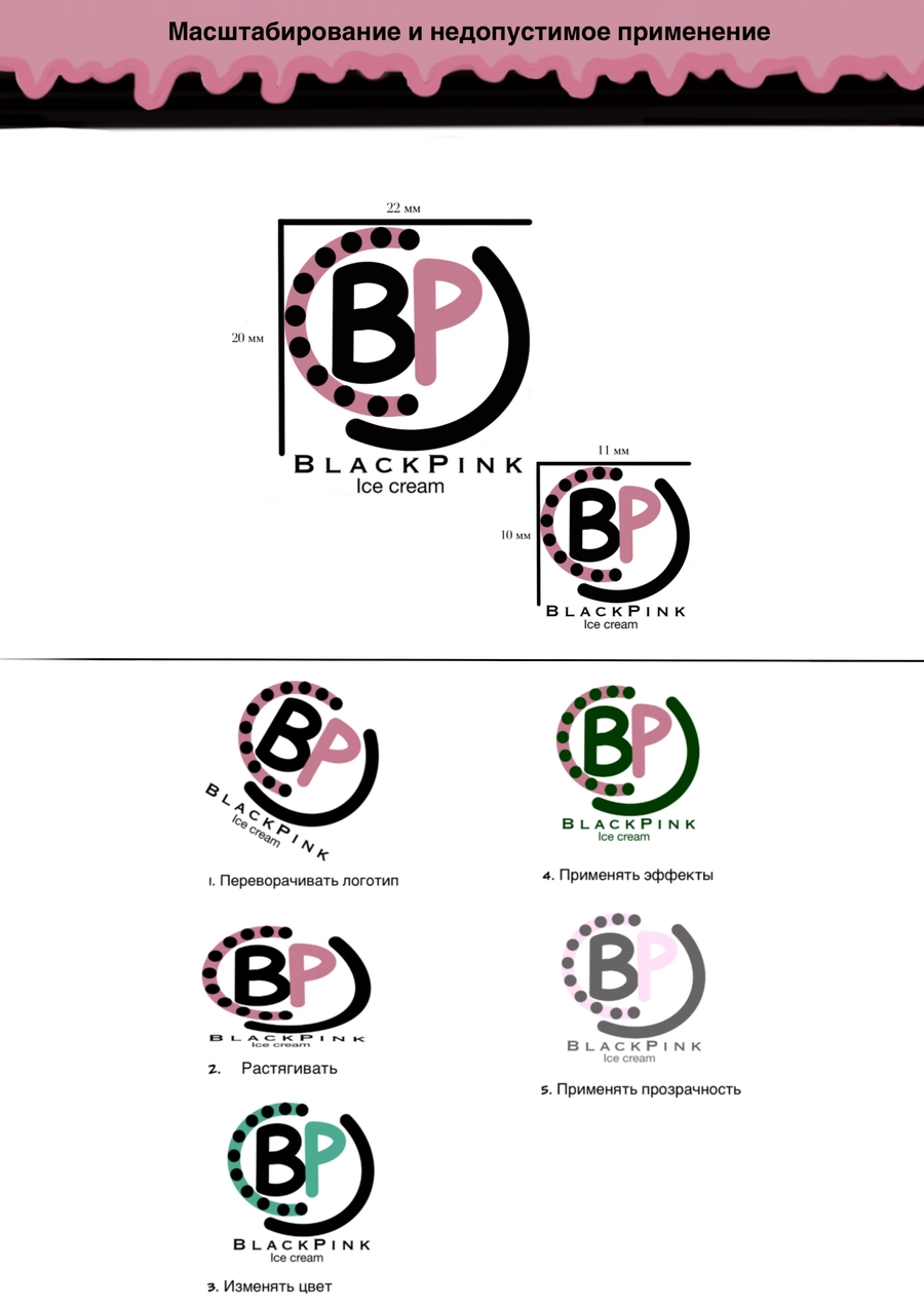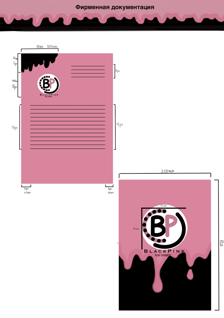 Брендбук для компании мороженого BlackPink, выполнено в Procreate