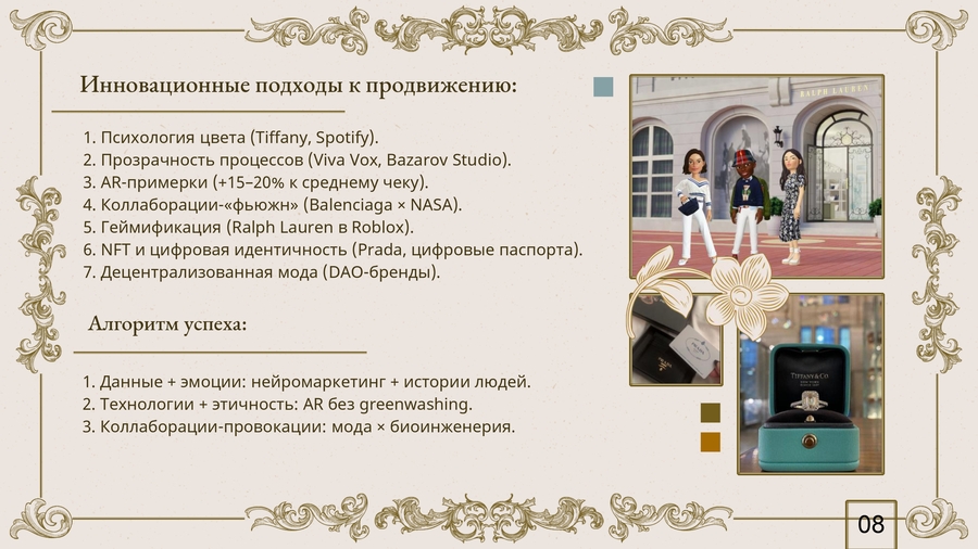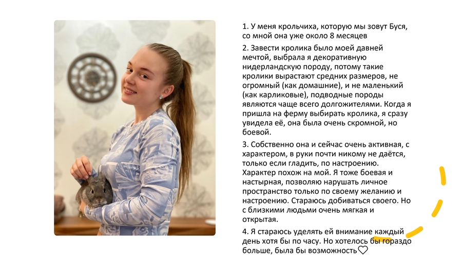 Вся моя жизнь тесно связана с визуальным восприятием действительности. Я замечаю и оцениваю мир через линзу формы, цвета, пространственной гармонии и повествования. Этот навык сопровождает меня ежедневно, как в хобби (регулярные наблюдения за окружающим пространством и фиксация моментов красоты), так и в рабочих процессах. Образовательный путь позволил мне развить мои природные склонности. Бакалавриат по специальности «Реклама и связи с общественностью» предоставил прочную основу для понимания процессов коммуникации, психологии восприятия аудитории и навыков передачи информации. Однако именно дополнительное образование по профилю «Продюсирование проектов» сыграло определяющую роль в моем карьерном росте. Курсы, такие как «Дизайн и верстка», «Инфографика», «Фотография» и «Сторителлинг», вместе с практическими навыками работы в программах Figma и Adobe Illustrator, подтолкнули меня к четкому осознанию своей будущей траектории. Именно поэтому я остановила свой выбор на магистерской программе «Коммуникационный цифровой дизайн» в НИУ ВШЭ.