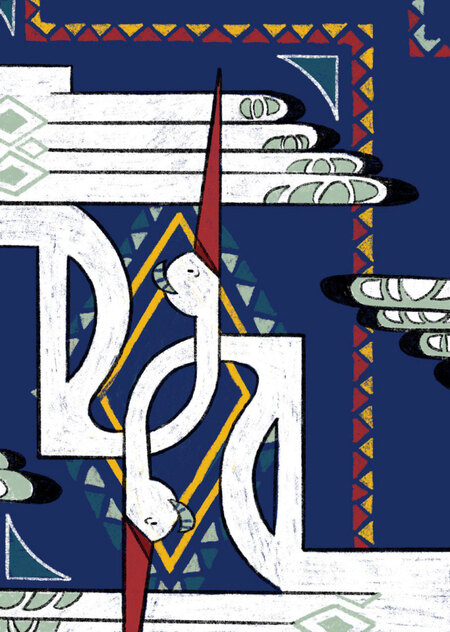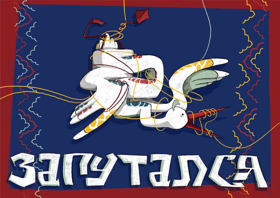 Крышка коробки — это распущенный ковер. Там и запутались наши несчастные герои в нитях собственного разума.