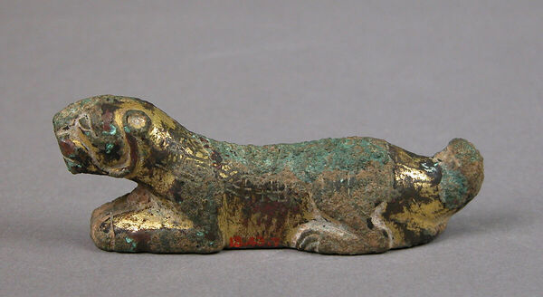 Талли в форме тигра (Ху фу). династия Хань (206 г. до н. э.–220 г. н. э.) Китай. Позолоченная бронза Бош Рейц, С. С. «Находка китайской гробницы». Бюллетень Метрополитен-музея 13, нет. 6 (июнь 1918 г.).