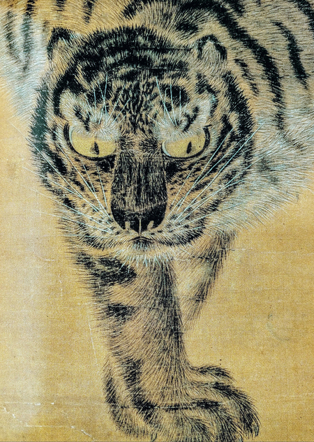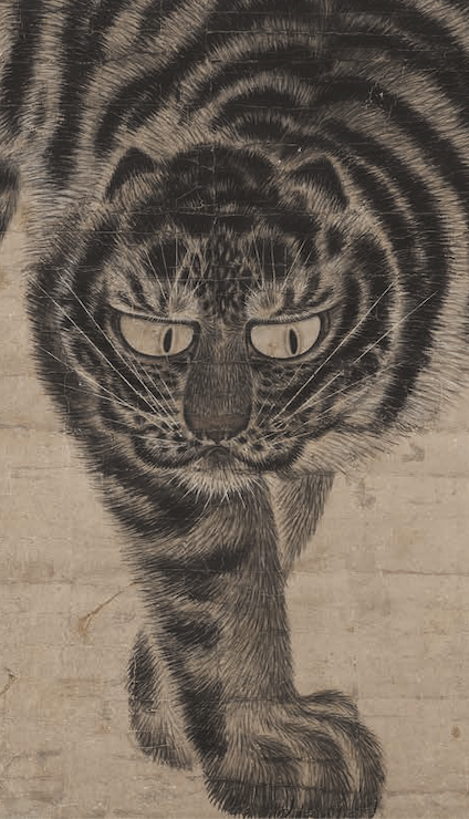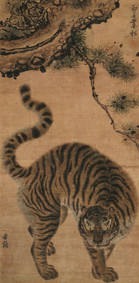 Тигр под сосной Династия Чосон, Светлые чернила на шелке. Национальный музей Кореи