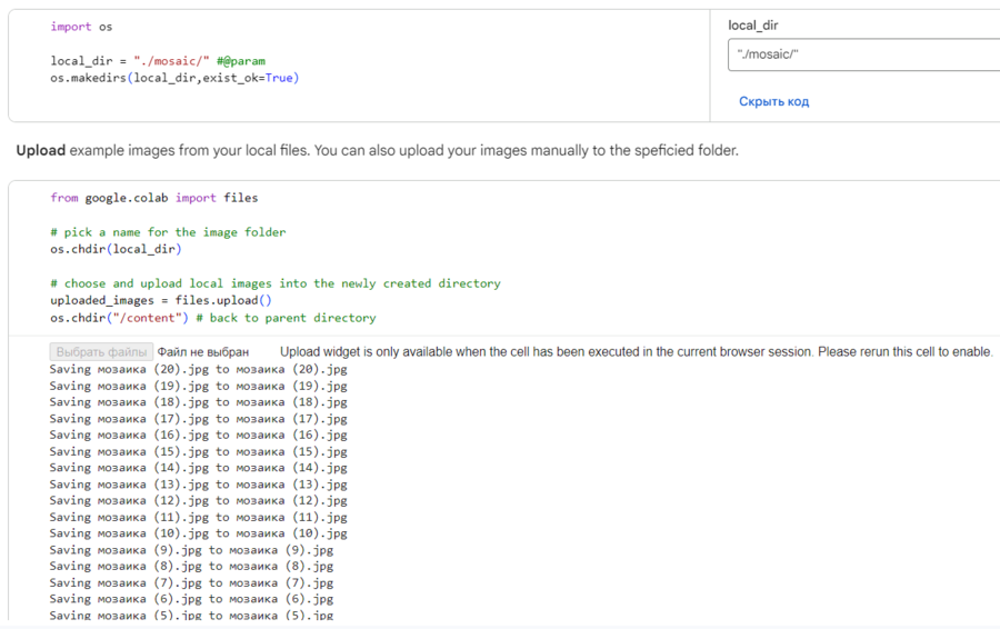 Сохраняем модель и приступаем к генерации наших мозаичных изображений.