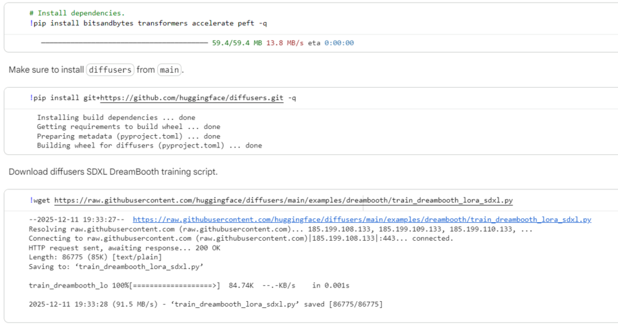 Для начала работы требуется загрузить необходимые библиотеки: Diffusers, DreamBooth и прочие.