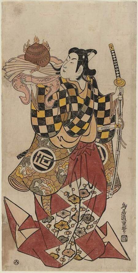 1. Гравюра актера театра Кабуки Саногава Итимацу I, художник Тории Киёхиро, 1750-е годы. 2. Тандзиро Камадо «Клинок, рассекающий демонов».