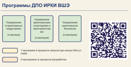 Узнать, как кластер устроен изнутри, как им руководить и управлять всеми бизнес-процессами можно на курсе ДПО "Управление креативными кластерами и пространствами". Всего за 4 месяца студенты проходят 7 тематических модулей, составленных практиками-профессионалами.