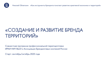 Николай Облапохин рассказал про образовательный курс «Создание и развитие бренда территорий», созданный ИРКИ НИУ ВШЭ совместно с Ассоциацией Брендинговых компаний России. Программа стартует уже осенью 2025 года.