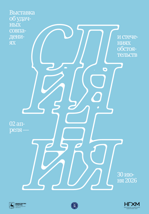 С помощью типографики в плакате я постаралась передать основной посыл выставки и визуализировать ее название: как буквы, переплетаясь и сливаясь, становятся не только одним словом, но и единой формой, так и случайные совпадения в судьбах часто ведут к единому итогу и образу. Типографика также напоминает рябь на воде, к которой только что прикоснулись.
