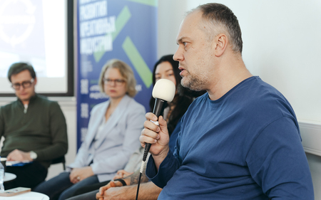 Модерировал мероприятие Андрей Мамонтов — академический руководитель программы ДПО ИРКИ НИУ ВШЭ «Перезагрузка бизнеса в креативной индустрии: раскрытие потенциала владельца», ведущий аналитик Лаборатории образовательных и проектных решений для ДПО НИУ ВШЭ