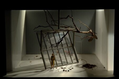 Визуальная среда спектакля может быть усилена как самостоятельное художественное высказывание, работающее на уровне символов и метафор. Тема женской судьбы и одиночества раскрывается через образы повторения и множественности. Зеркальные и отражающие элементы на сцене способны визуально «умножать» персонажей, создавая ощущение коллективного опыта и множества схожих судеб. Цветовое решение может быть усилено за счёт акцентного использования красного цвета — как символа предела, внутреннего напряжения, жесткости обстоятельств и эмоционального надлома. Такой приём усиливает драматургию и визуально разбивает монотонность сцены. Пространство сцены предлагается выстраивать как дискомфортную, фрагментированную среду: элементы хаоса, обломанные конструкции, дерево с нарушенной формой — как визуальная метафора внутреннего состояния героинь.