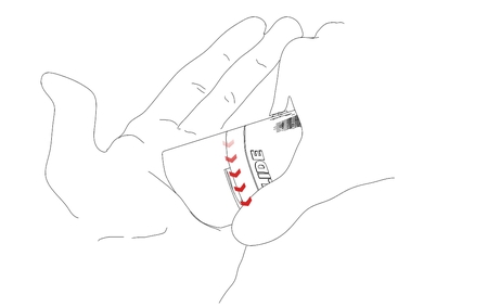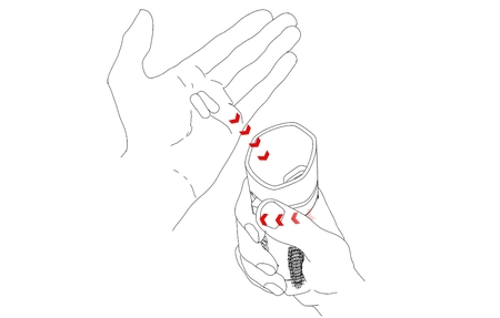 Для ивлечния достаточно убедиться в нахождении нужных таблеток напротив створки, прислонить носик к ладони и оттянуть створку.