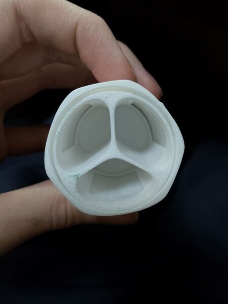 Нескользящий паттерн для пальцев, а также выпуклый логотип не дают скользить в ладони. Шестигранная форма корпуса помимо уменьшения габаритов также даёт удобство хвата и исключает укатывание.