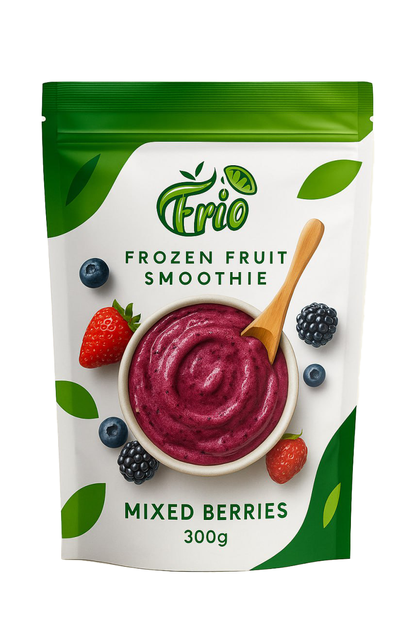 /image prompt: generate frozen fruit smoothie packaging based on this branding Нейросеть: nanobanana