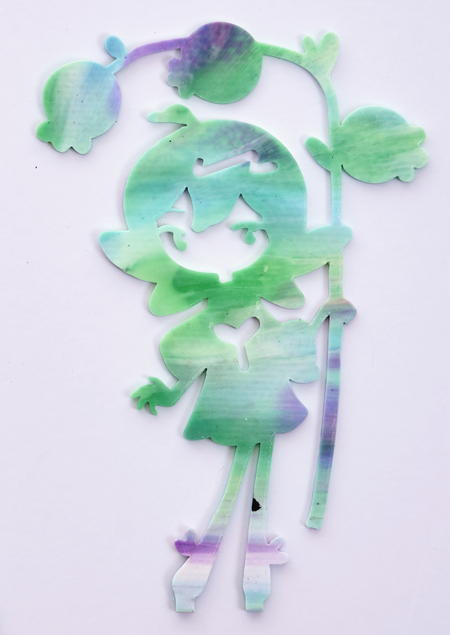 работы сделаны из PLA, этот материал формирует крепкий, тонкий лист, который можно резать на лазерном резаке по векторному контуру