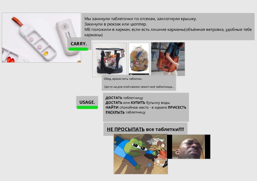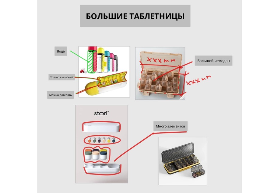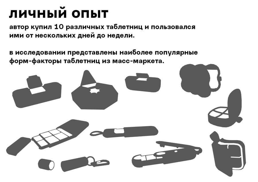 Исследование масс-маркета и зарубежных аналогов, а также полевые исследования показали, что практически ни одно из существующих решений для хранения таблеток не обладает должными потребительскими качествами.