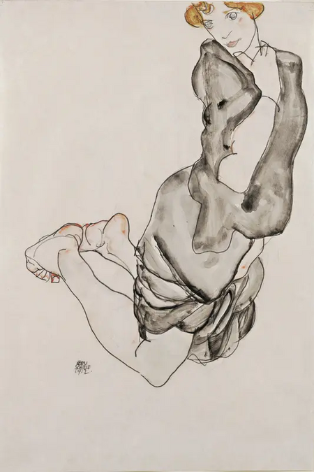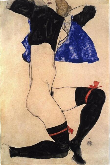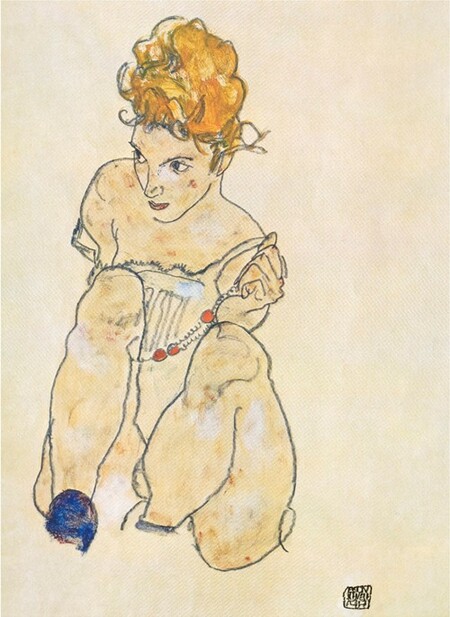 Эгон Шиле, Сидящая девушка с ожерельем, 1917 // Эгон Шиле, Обнажённая в синих чулках, 1912
