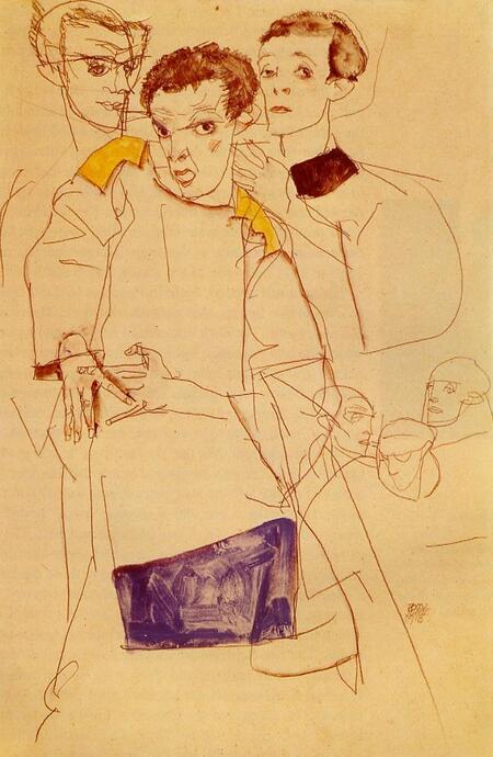 Эгон Шиле, Женский портрет, 1914 // Эгон Шиле, Тройной автопортрет, 1913