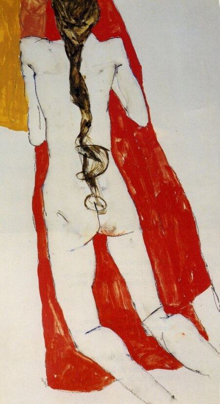Эгон Шиле, Стоящий обнаженный в красной набедренной повязке, 1914 // Эгон Шиле, Борец, 1913