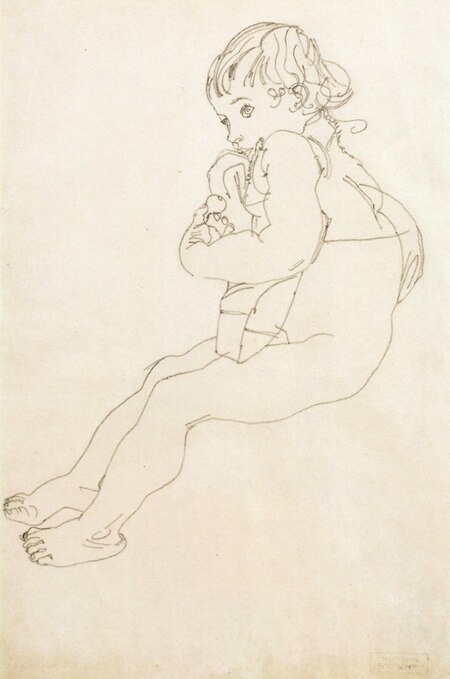 Эгн Шиле, Сидящий ребёнок, 1916 // Эгон Шиле, Женщина на коленях в сером плаще, 1912