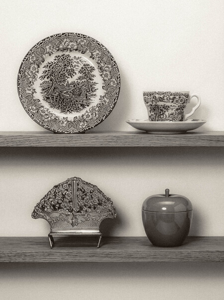 Основная идея — показать как винтажная посуда выступает как curated-объект (выбор в сторону и идеи, и визуала), который работает на эстетику интерьера и общий стиль