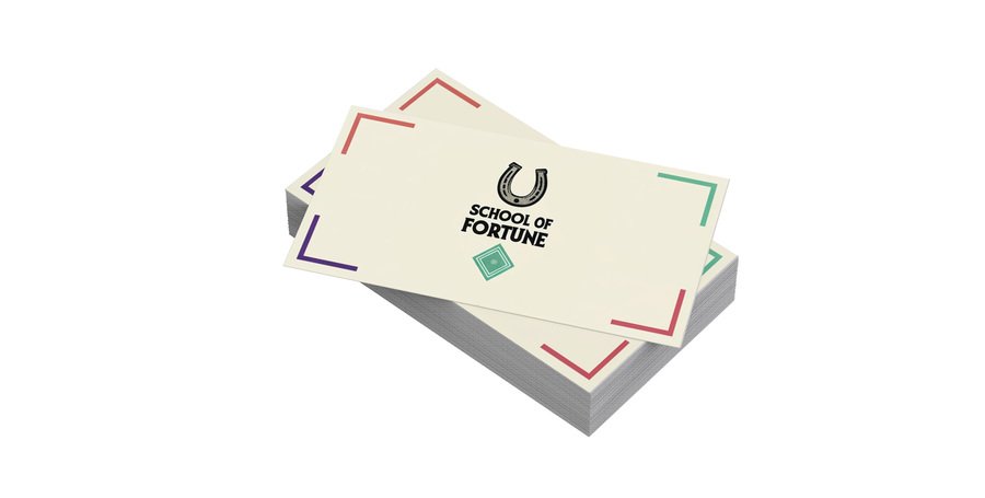 Below the logo — bold black text «School of Fortune», followed by smaller subtitle text «Education about luck and decision-making».