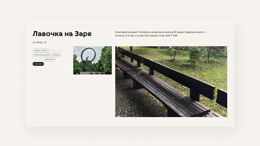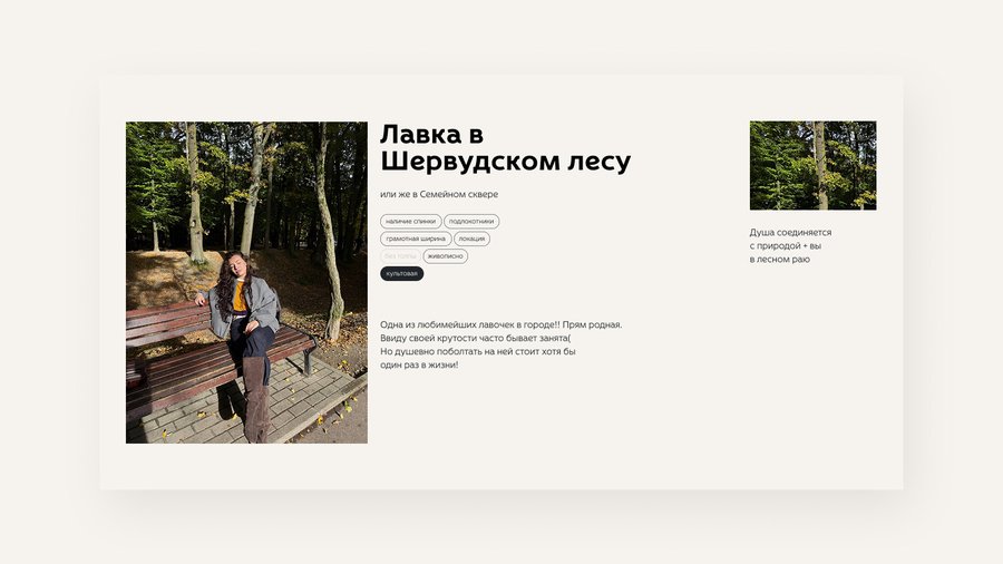 Я — коренная Калининградка. А еще я люблю гулять. Как все знают, лучшая прогулка продолжается и заканчивается на лавочке, в обсуждении самых горячих тем. В наше время очень сложно найти идеальную лавочку, подходящую по всем параметрам. Это целое искусство!