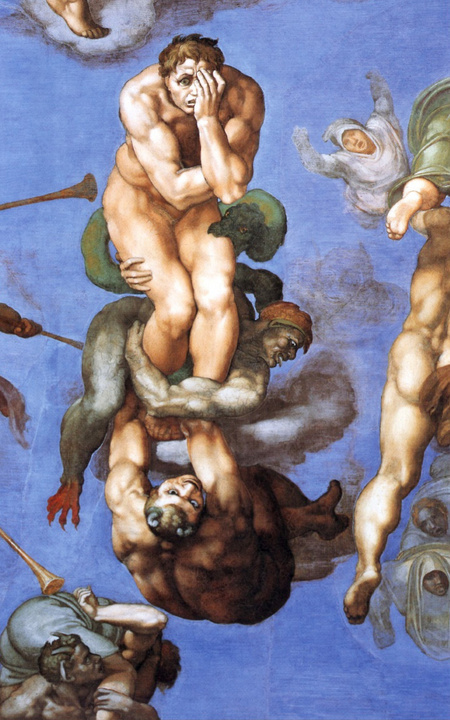Микеланджело Буонарроти. Фрагмент «Страшный суд». 1537–1541 гг. Фреска. Алтарная стена Сикстинской капеллы, Ватикан.