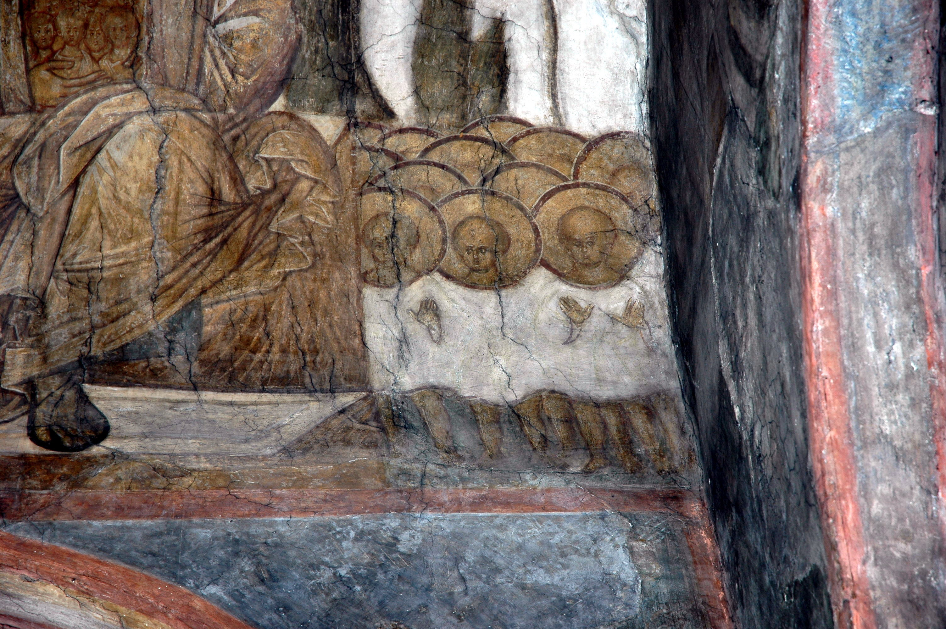 Примечательно, что детально прописанные образы были рассчитаны на внимательное прочтение. Это впечатление усиливают многочисленные мелкие надписи красной краской, в «Страшном суде» называющие практически все сцены[1]. Эта догматическая ясность и становится главным византийским наследием для Древней Руси.