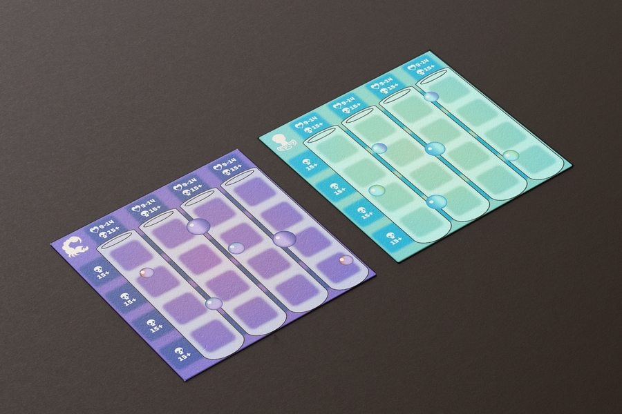 Соревновательная настольная игра для широкой аудитории на 2-5 человек, время партии от 20 минут для игроков 6+лет. В этой игре вам предстоит побывать в шкуре ядовитых животных-учёных. Цель — замешать из токсинов как можно больше противоядий. Но будьте осторожны — неверные дозировки могут превратить ваши труды в яд