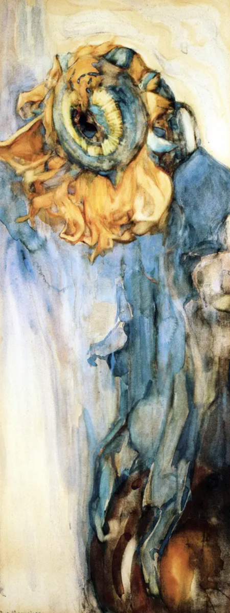 Ранние работы Мондриана выполнены в духе импрессионизма, они многоцветны и пластичны. Увядающие цветы будто плавятся от жары и стекают вниз, напоминая о том, что ничто не вечно.