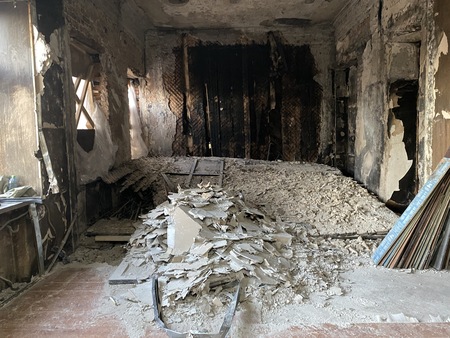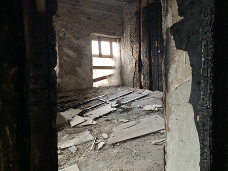 Зал на 5 этаже, где деревянные перекрытия почти полностью обвалились после пожара в 2018–2019 году