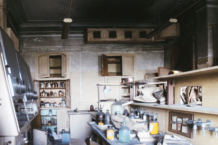 Химическое оборудование и реагенты, которые были оставлены в НИИ после переезда организации в другое здание