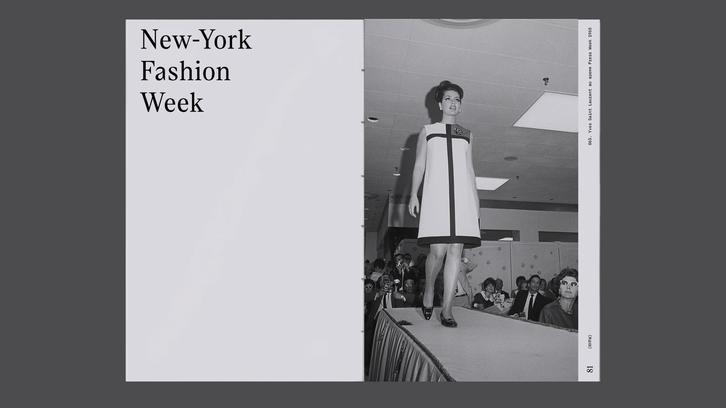 Диагональная линия н обложке книги отсылает к распространенному в мире моды обозначению сезонов F/W и S/S
