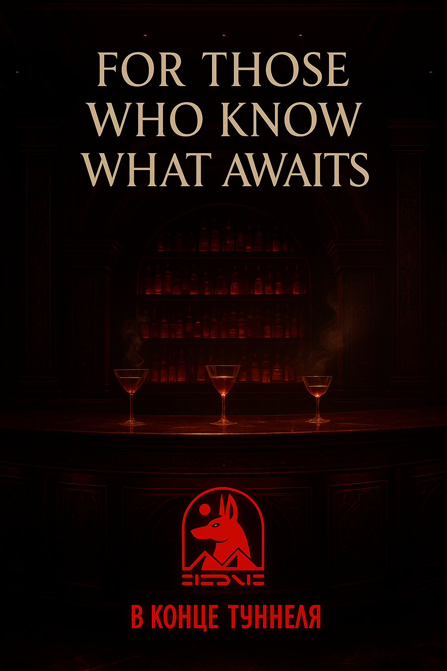 логотип бара «В конце туннеля» — внизу каждого постера., логотип в красном свете (как неоновая подсветка, чтобы сочетался с интерьером)