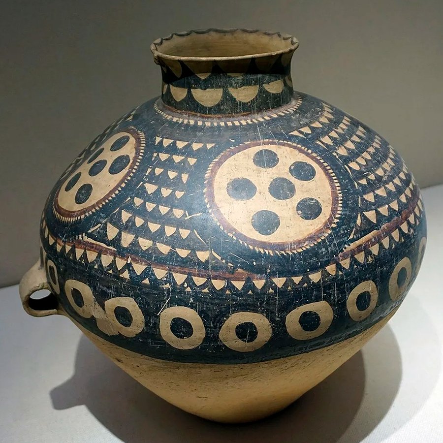 Луншань — культура, пришедшая на смену Яншао. Ручная лепка начала заменяться гончарным кругом, что стало технологическим прорывом, поднявшим качество изделий. Керамика имеет черный или серый цвет, отличается отсутствием орнамента и хорошей полировкой. Культура Маджая́о выделяется яркой росписью с черным пигментом, где широкие линии обрамляют круги, создавая выразительные и абстрактные узоры. Изделия изготавливались на глиняных лентах, с редким применением ручной лепки. Мы можем заметить, что Луншань демонстрирует технологический прогресс, указывая на растущие стандарты качества, а Маджая́о обогатила керамическое искусство новыми выразительными узорами, продолжая тенденции предыдущих культур.