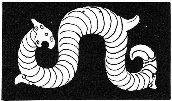 Кольцеобразный нефритовый дракон с головой свиньи, культура Хуншань. Изделие выполнено в форме спирали, акцент сделан на плавную форму с минимумом мелких деталей, резьба стилизована и интуитивна. Вероятно, выполнено методом массивной объёмной обработки с использованием шлифовки и полировки для достижения гладкости и округлости форм.