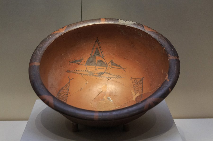 Яншао, чаша с геометрическим изображением человеческого лица и рыбы, ок. 3500 г. до н. э.