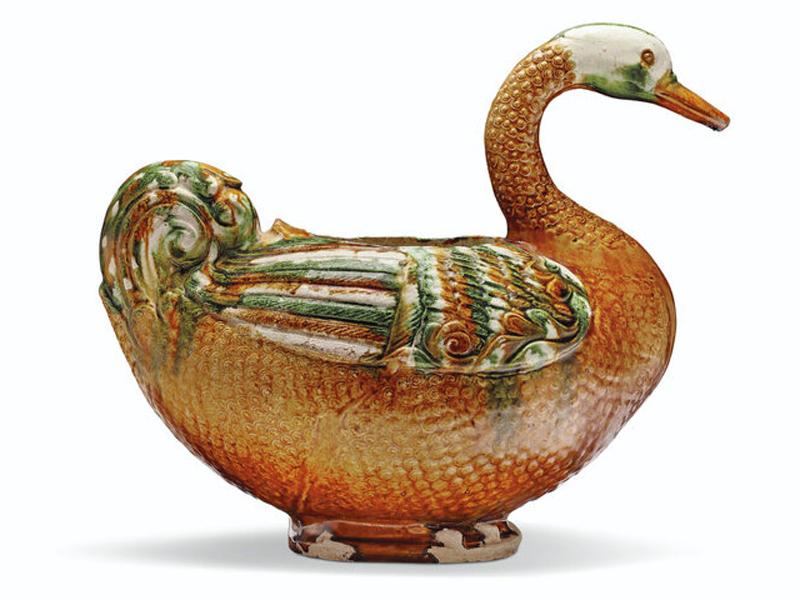Фарфоровый кувшин с крышкой; керамическая бутыль; блюдо покрытое свинцовой глазурью; сосуд в форме гуся. Династия Тан 618-907 гг.